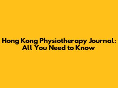 Hong Kong Physiotherapy Journal: All You Need To Know