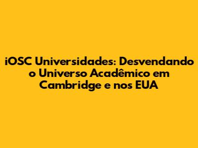 IOSC Universidades: Uma Jornada Por Cambridge E EUA